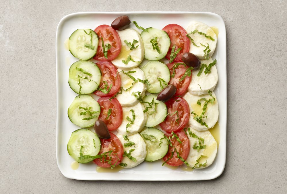Fresh mozzarella, tomato, Kalamata olives, cucumber, olive oil & fresh basil. Served with a side of balsamic vinaigrette.