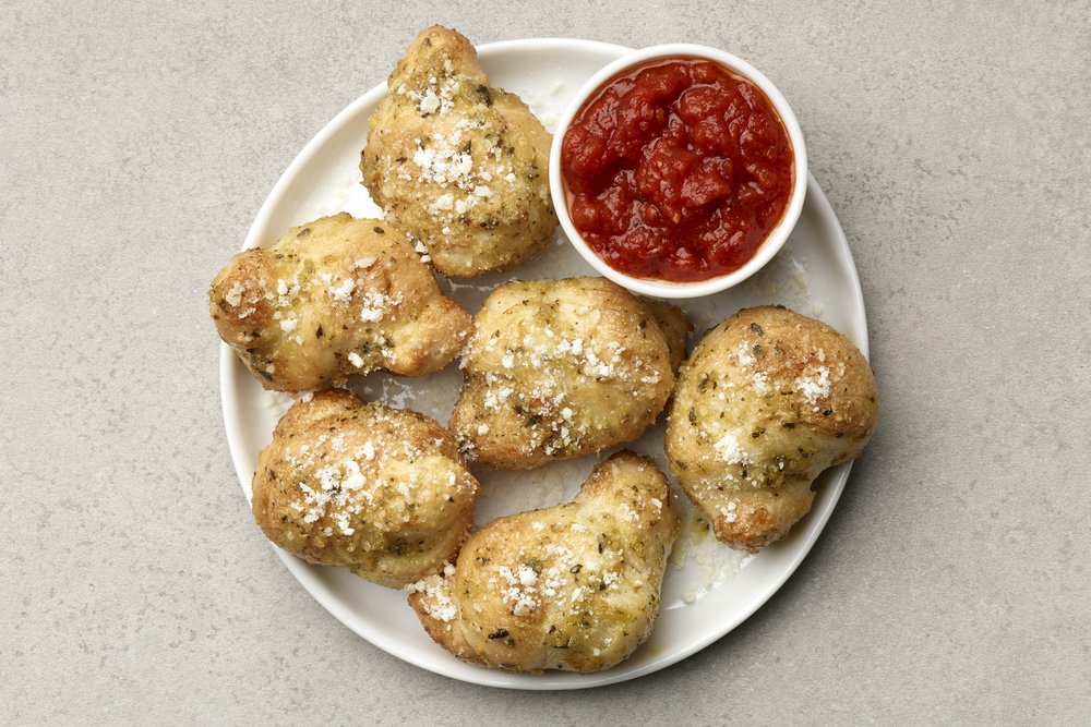 Freshly-made dough tossed with olive oil, parmesan cheese & fresh garlic. Served with a side of marinara sauce.